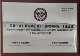 中國(guó)輕工日用玻璃行業(yè)(日用玻璃制品)十強(qiáng)企業(yè)